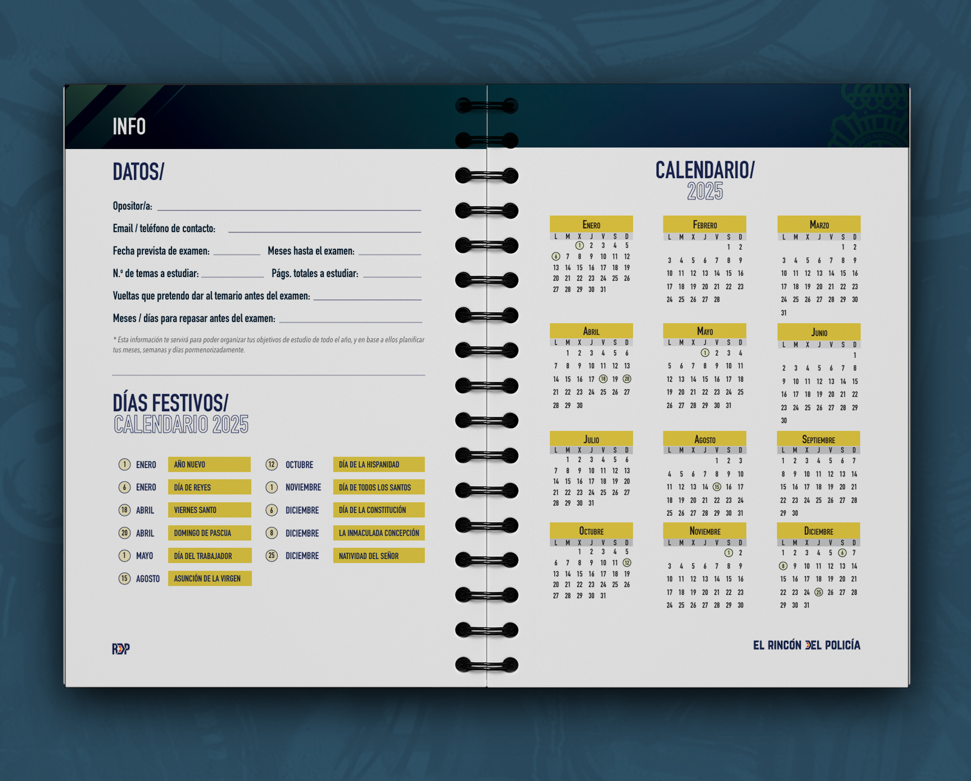 En El Rincón del Policía tenemos el complemento perfecto para organizarte toda la oposición a la Escala Básica de la Policía Nacional, la nueva Agenda 2025 para Policía Nacional.